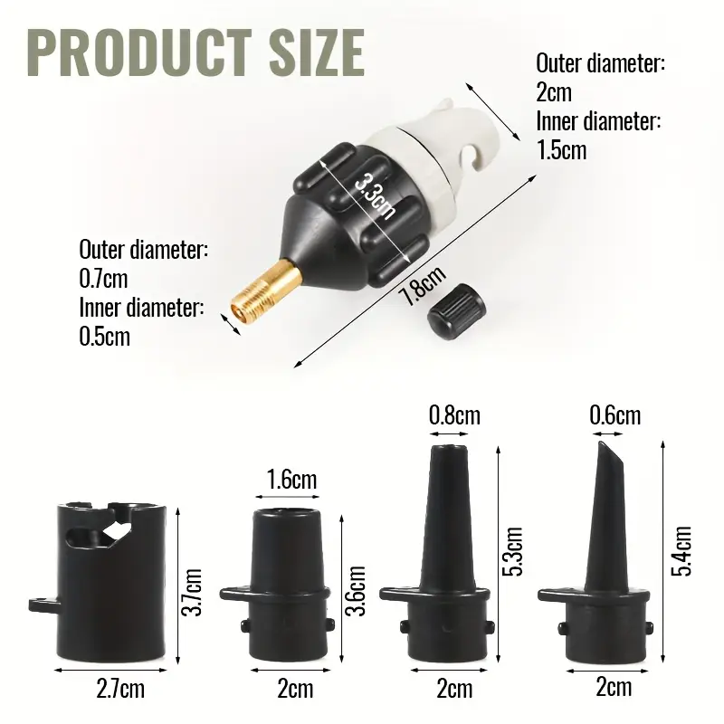 • Сумісність: Підходить для клапанів SUP, надувних човнів, каяків, надувних ліжок і басейнів; включає 4 різні насадки (кругла, гостра тощо).