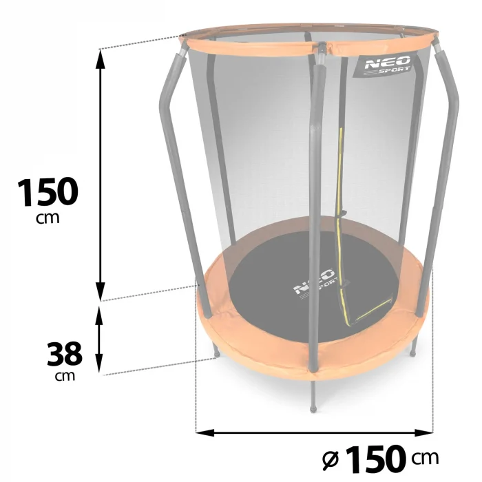 Батут Neo-Sport діаметром 150 см є безпечним і стабільним спортивним обладнанням. Захисна сітка оснащена надійною блискавкою. Стовпці каркасу обгорнуті товстим поролоном, а еластичні мотузки, що кріплять мат, мають спеціальний захисний комірець з піною всередині. Такі рішення забезпечують безпечне використання батута та захищають від механічних травм.