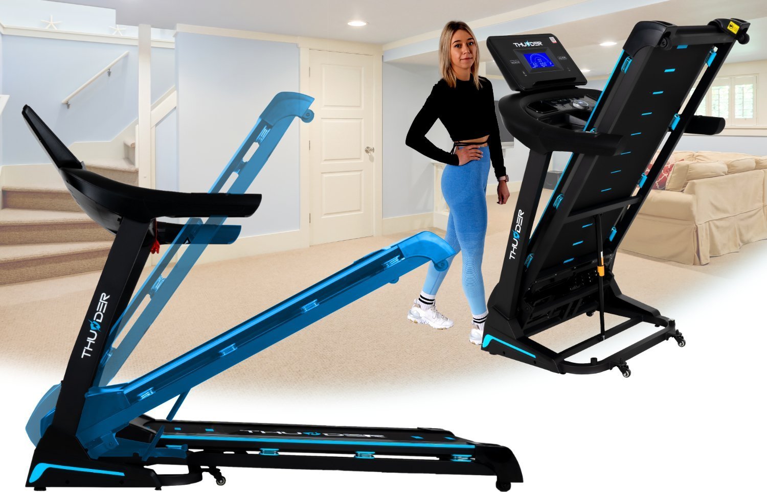 По завершенні тренування бігову доріжку THUNDER Core-S можна компактно скласти, піднявши бігове полотно у вертикальне положення. У такому вигляді тренажер не буде забирати корисну площу у вас вдома і не перетворить кімнату на спортзал. Тож якщо раніше цей фактор стримував вас від купівлі бігової доріжки, сучасні апарати позбавлені цих проблем.