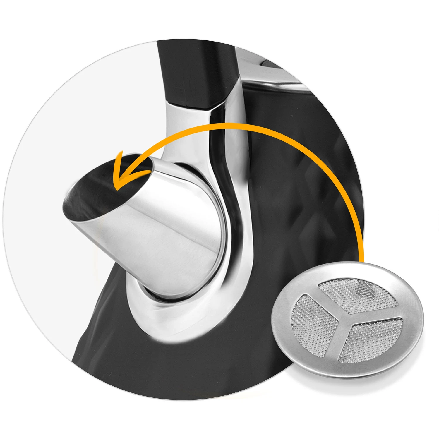 Металевий знімний фільтр попереджає утворення вапняного нальоту, забезпечуючи чистоту вашого чаю. Він легко знімається, очищається, або при необхідності замінюється на новий, гарантує тривалий термін служби пристрою.