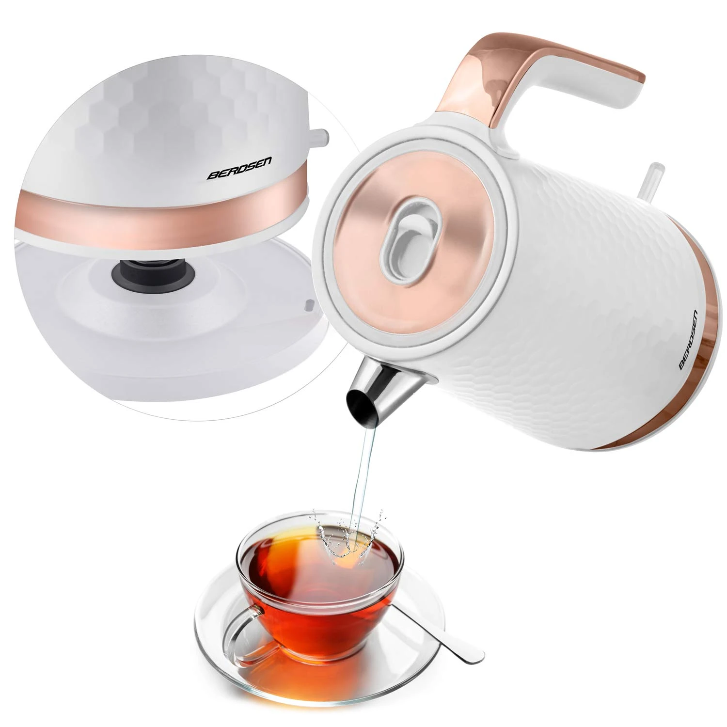 Елегантний електрочайник Berdsen BD-705 з об’ємом 1.7л, виконаний у білому та мідному кольорах