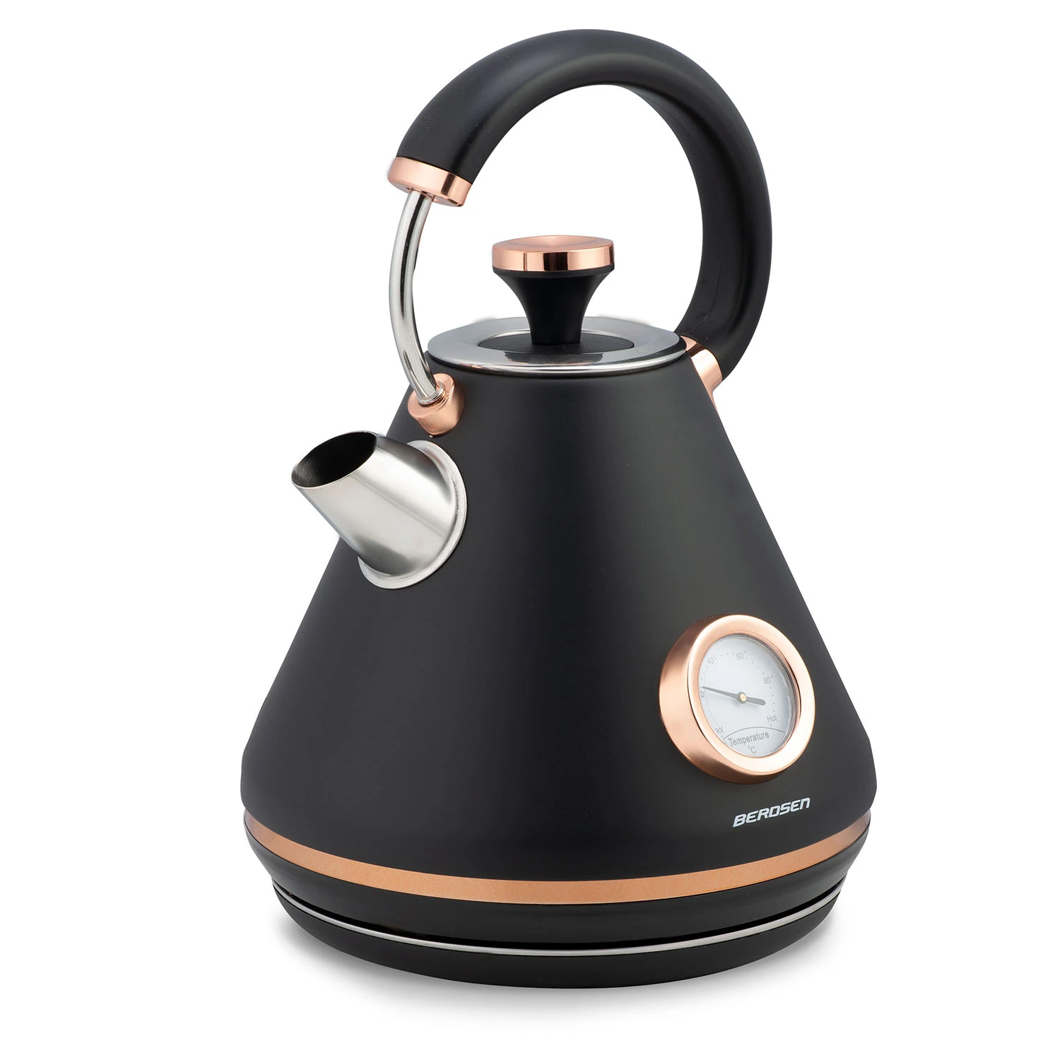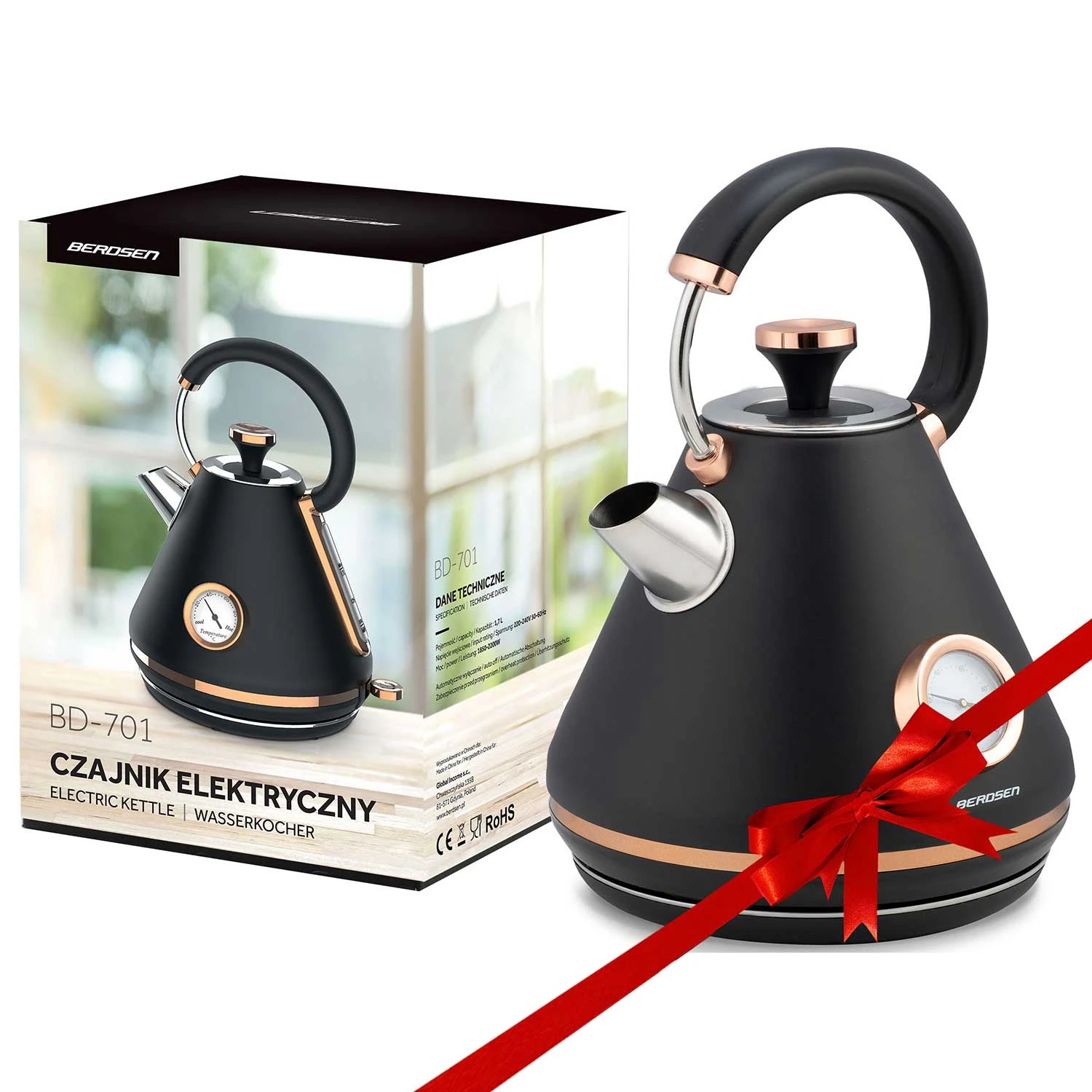 - Стильний вигляд: Чорний колір корпусу надає чайнику елегантності, підкреслюючи ретро-стиль.