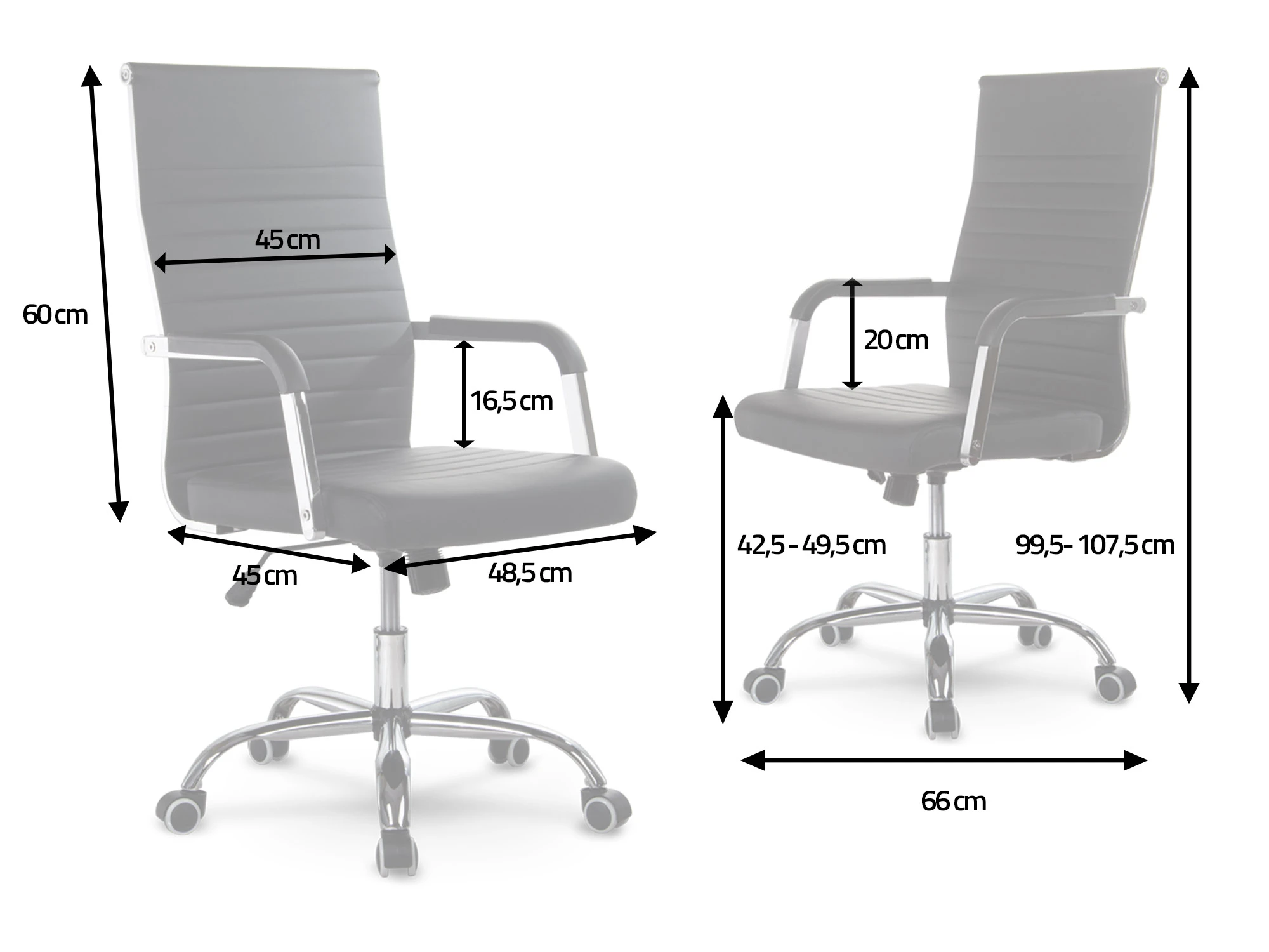 - міцні, хромовані підлокітники захищені матеріалом, стійким до оббивки та стирання