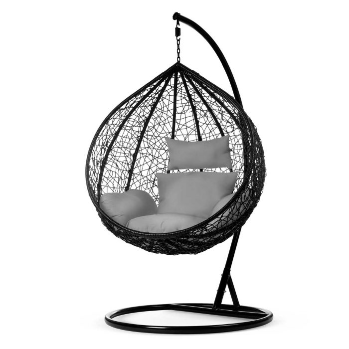 Крісло садове підвісне Hawana чорне + сірі подушки (кокон) – Стиль і зручність