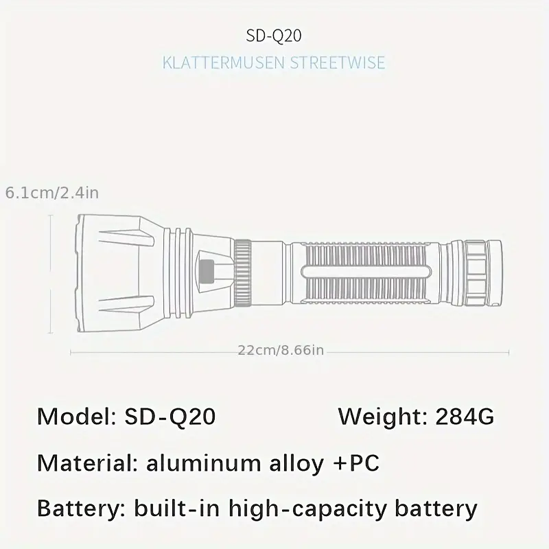 Джерело живлення: вбудований акумулятор (або батарейний блок типу 18650 ), із зарядкою по USB або через спеціальний порт.