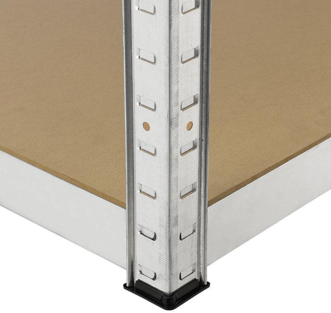 Стелаж складається з 5 полиць, на яких можна розмістити продукти, коробки або прилади, з максимальним навантаженням до 200 кг на кожну полицю.