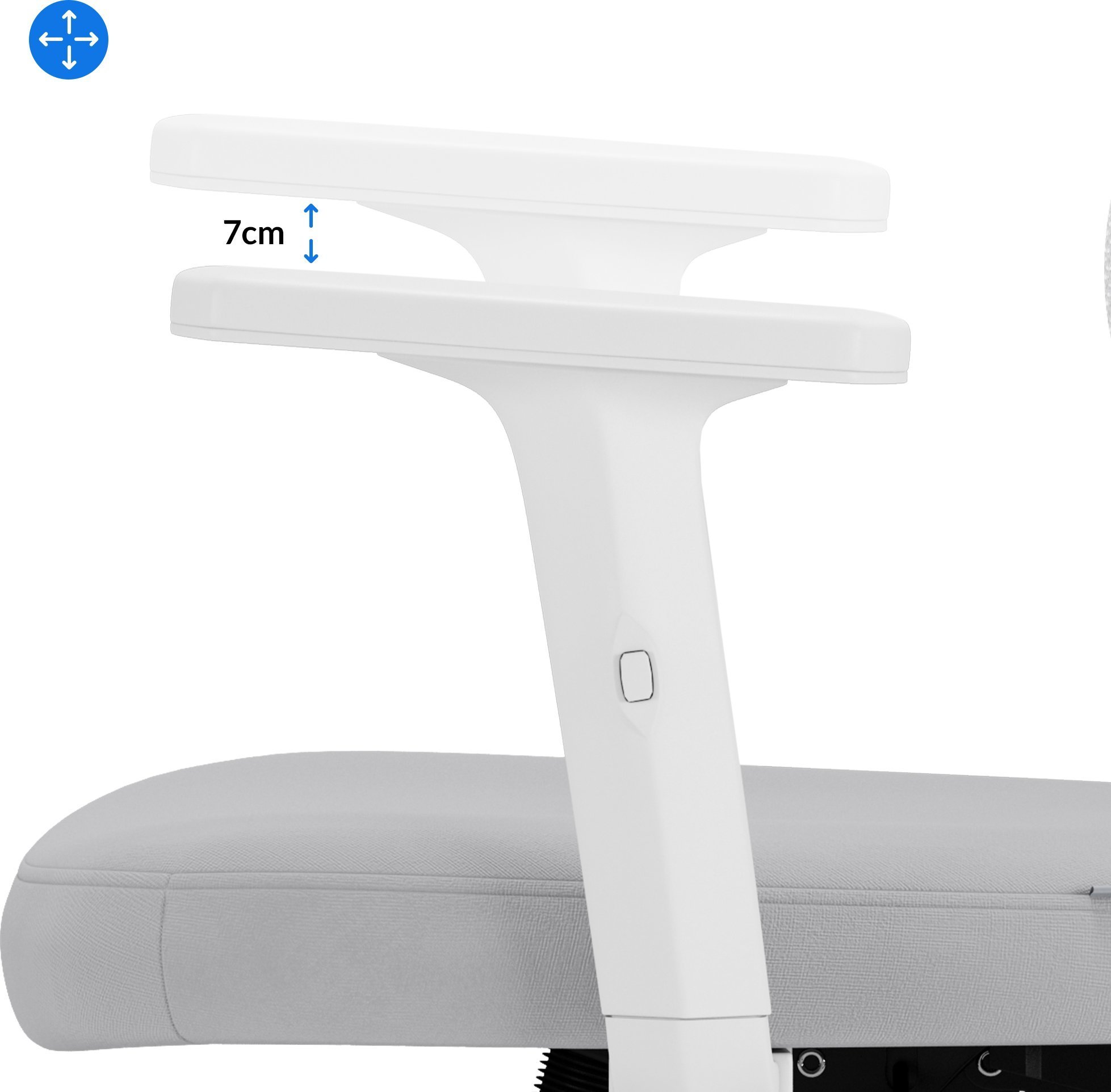 Крісло SENSE7 VENO пропонує виняткову ергономіку завдяки регульованим підлокітникам, які можна регулювати вгору та вниз на 7 см. Це рішення дозволяє підтримувати правильну поставу за столом, що є вирішальним для здоров’я хребта та загального комфорту під час роботи.