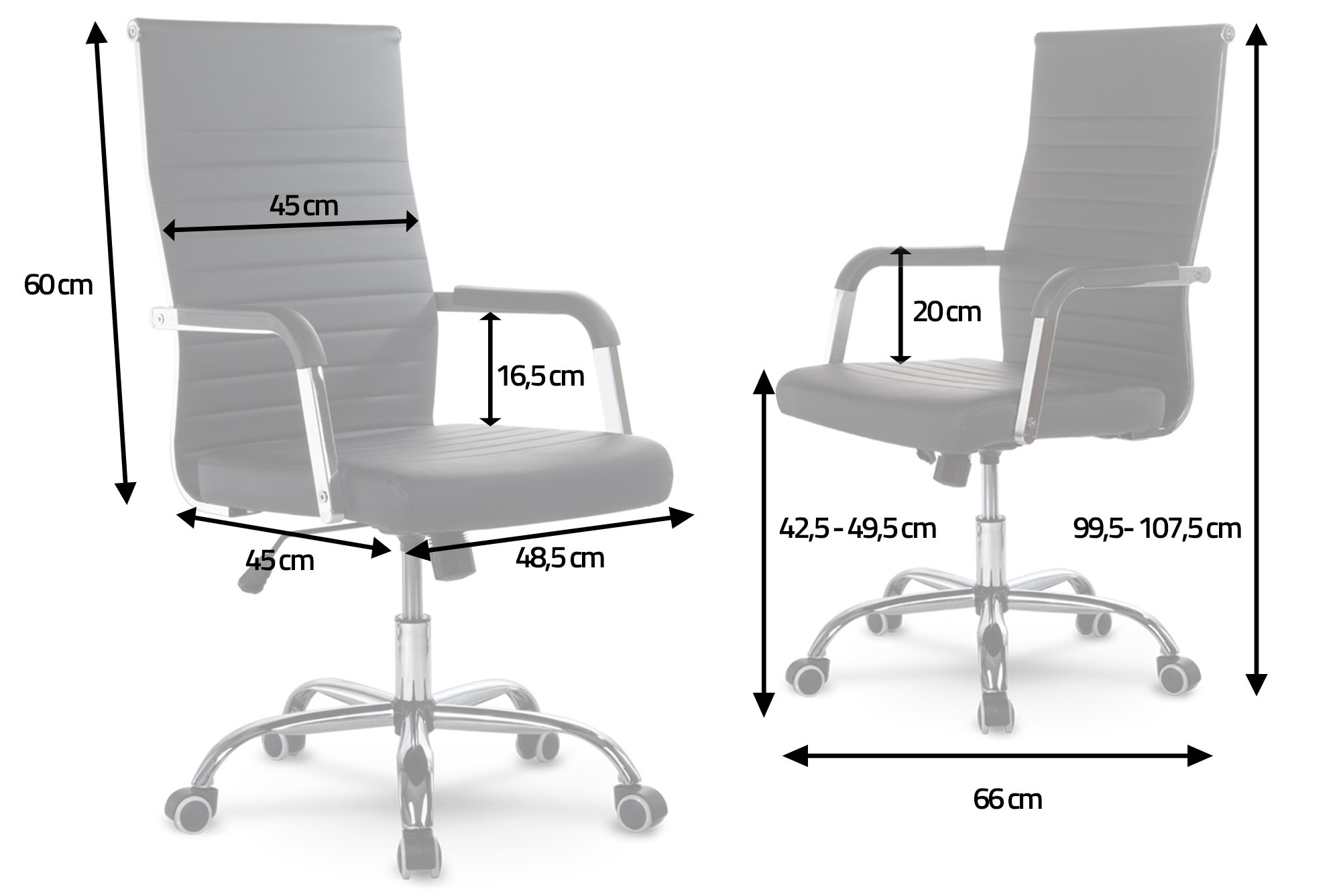 – Загальна висота становить 107,5 см, забезпечуючи ідеальну підтримку для вашої спини.