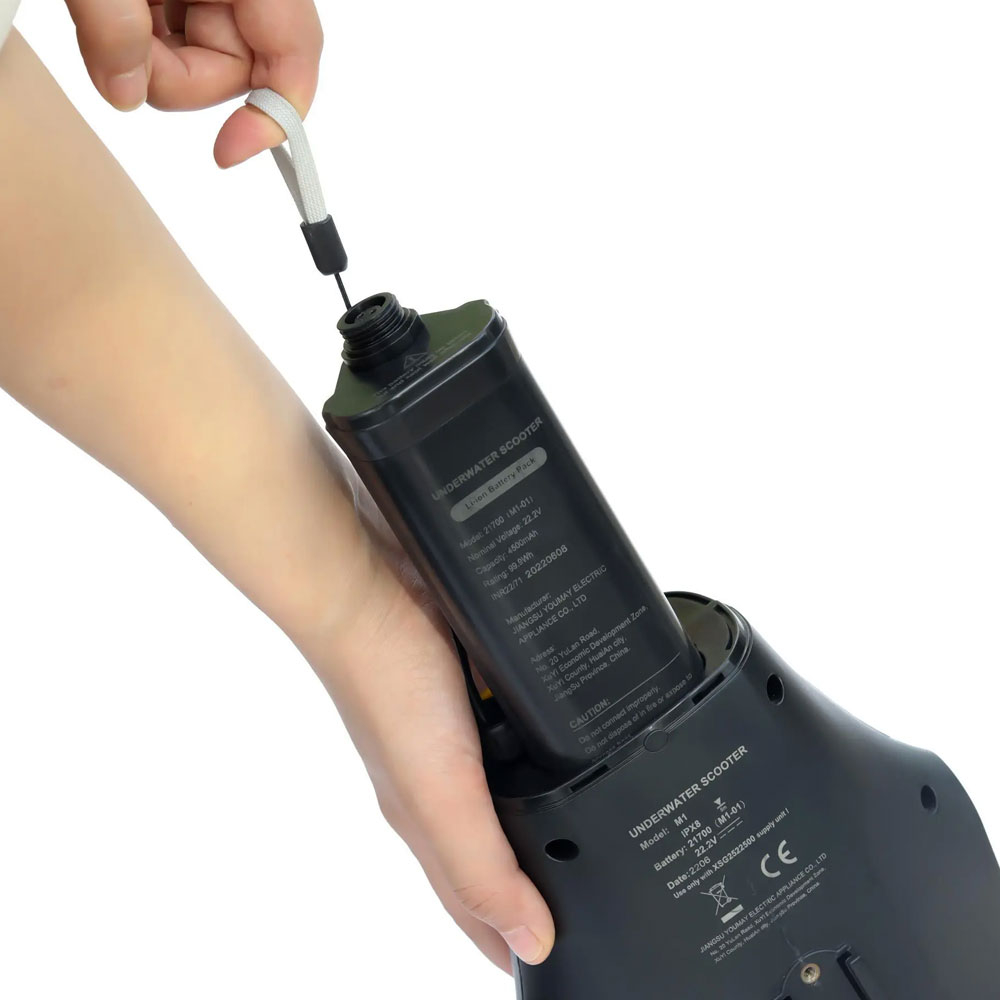 Двигун оснащений сучасним літій-полімерним акумулятором 22,2 В ємністю 4500 мАг, що забезпечує до 60 хвилин динамічної роботи . Ви можете долати великі відстані або годину пірнати, не турбуючись про підзарядку. А коли заряд закінчиться, зарядний пристрій та кабель USB-C, що входять до комплекту, дозволяють швидко зарядити акумулятор.