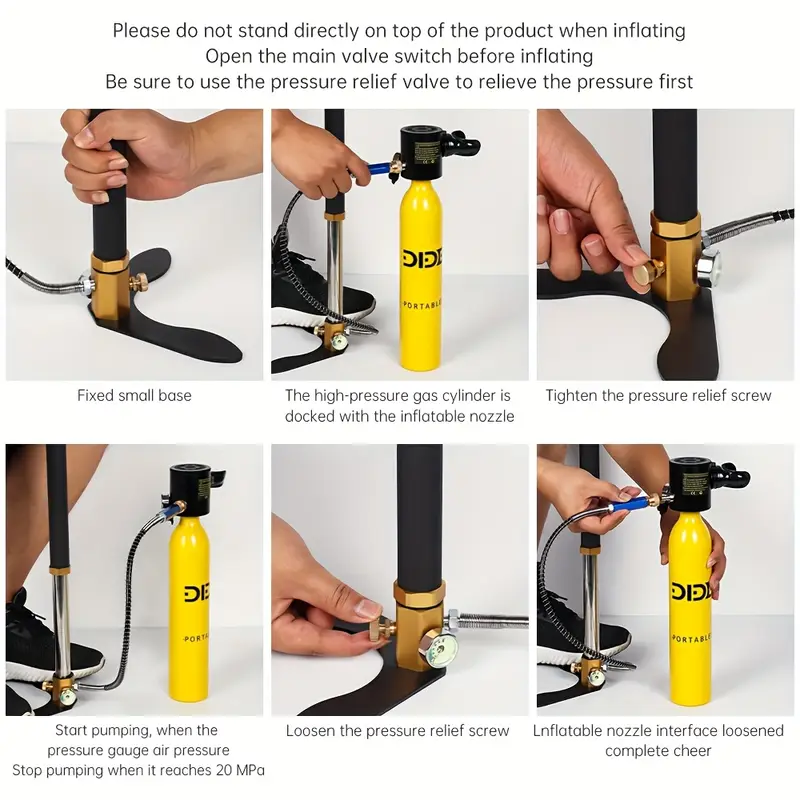 Триступінчатий ручний насос DIDEEP призначений для заправки PCP і сумісний з більшістю PCP гвинтівок і пістолетів. Максимальний тиск – 300 BAR. Конструкція насоса дозволяє швидко зібрати і розібрати його для більш зручного транспортування і зберігання.