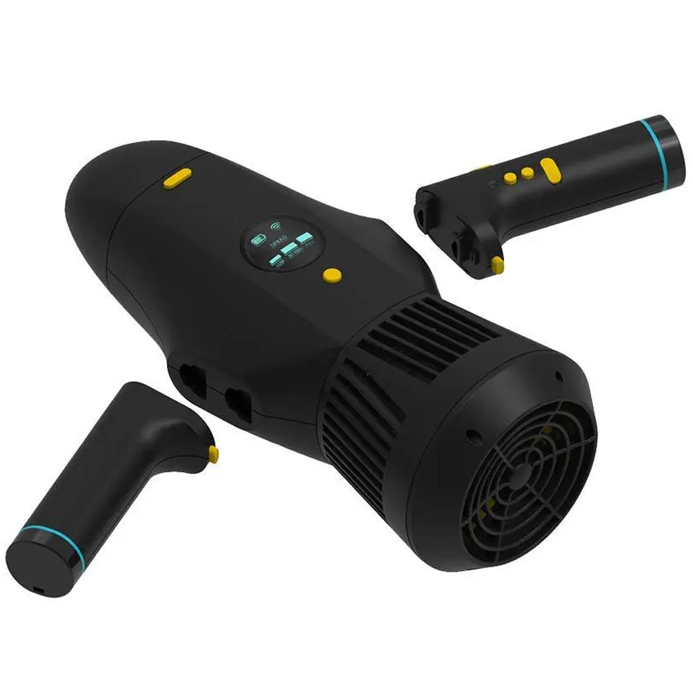 Комплект двигуна постачається з повним набором компонентів, які дозволяють перетворити його на підводний скутер. Зручний курок на ручці дозволяє регулювати швидкість після підключення контролера.
