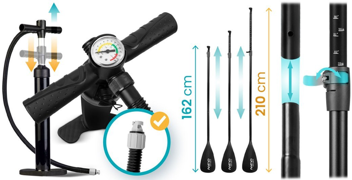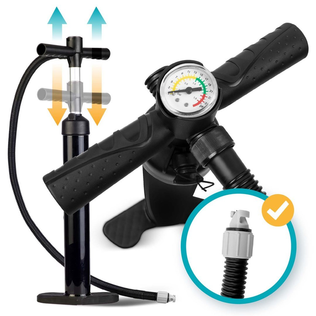 Двостороннє надування – накачує повітря як при натисканні, так і при підйомі поршня – ви можете надути дошку швидше.