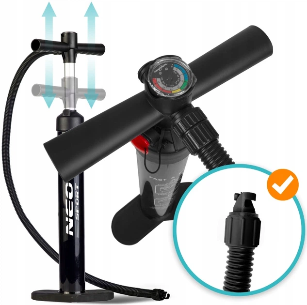 Двостороннє надування – накачує повітря як при натисканні, так і при підйомі поршня – ви можете надути дошку швидше.