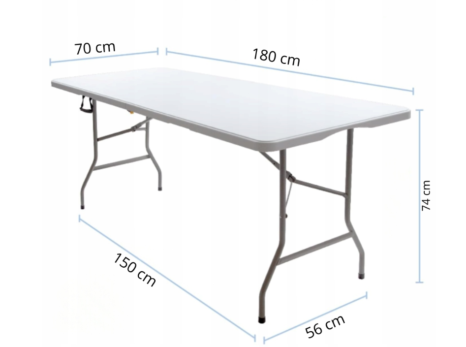 Стіл для кейтерингу має простору стільницю розміром 180×70 см , за якою можуть легко розміститися до 8 осіб одночасно. Це ідеальне рішення для сімейних вечерь, пікніків, садових вечірок чи зустрічей з друзями. Велика робоча поверхня забезпечує комфорт під час подачі їжі, роботи або організації заходів. Завдяки універсальному дизайну, стіл чудово підійде як вдома, так і на вулиці , гарантуючи функціональність на найвищому рівні.