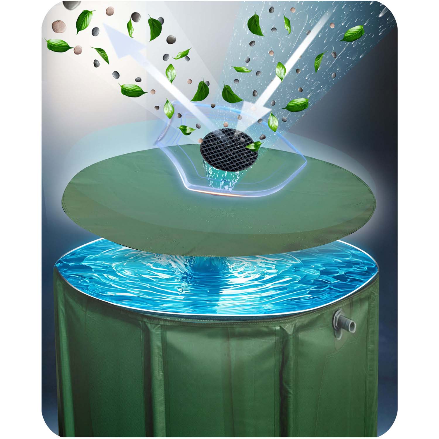 - Зустрічайте дощову воду з радістю: тепер ви можете легко збирати воду як через кран, так і з верхньої частини резервуару.